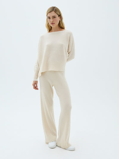 2 ply 100% cashmere oversize tunic, boatneck, deep rib on hem with side splits. The model is 176cm / 5"8 one sized.