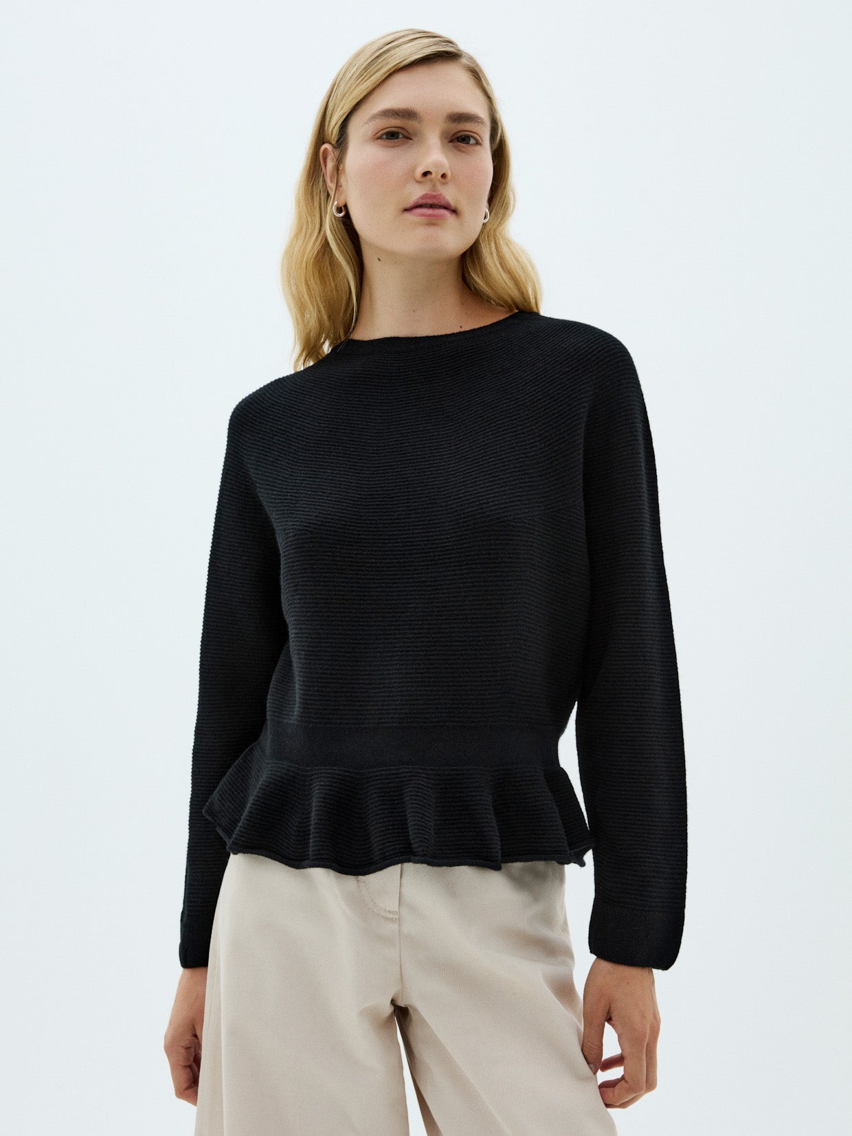 1 ply 100% cashmere top with peplum skirt and all over links links details. The model is 176cm / 5"8 and is wearing size S